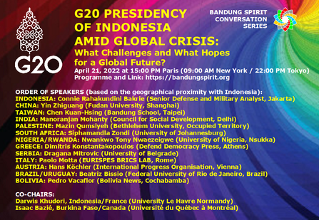 The G20 Summit will take place at the end of October 2022 in Indonesia amid global crisis. The watchwords are “RECOVER TOGETHER, RECOVER STRONGER”. However, the global crisis provoked by the Covid-19 pandemic was aggravated and prolonged by the Russian military attacks on Ukraine, and the G20 risks to be dragged into geopolitical battle between world power blocs.